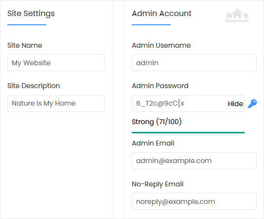 - Admin Username: Your new Geeklog username (for security reasons, do not use the administrator or the admin username).